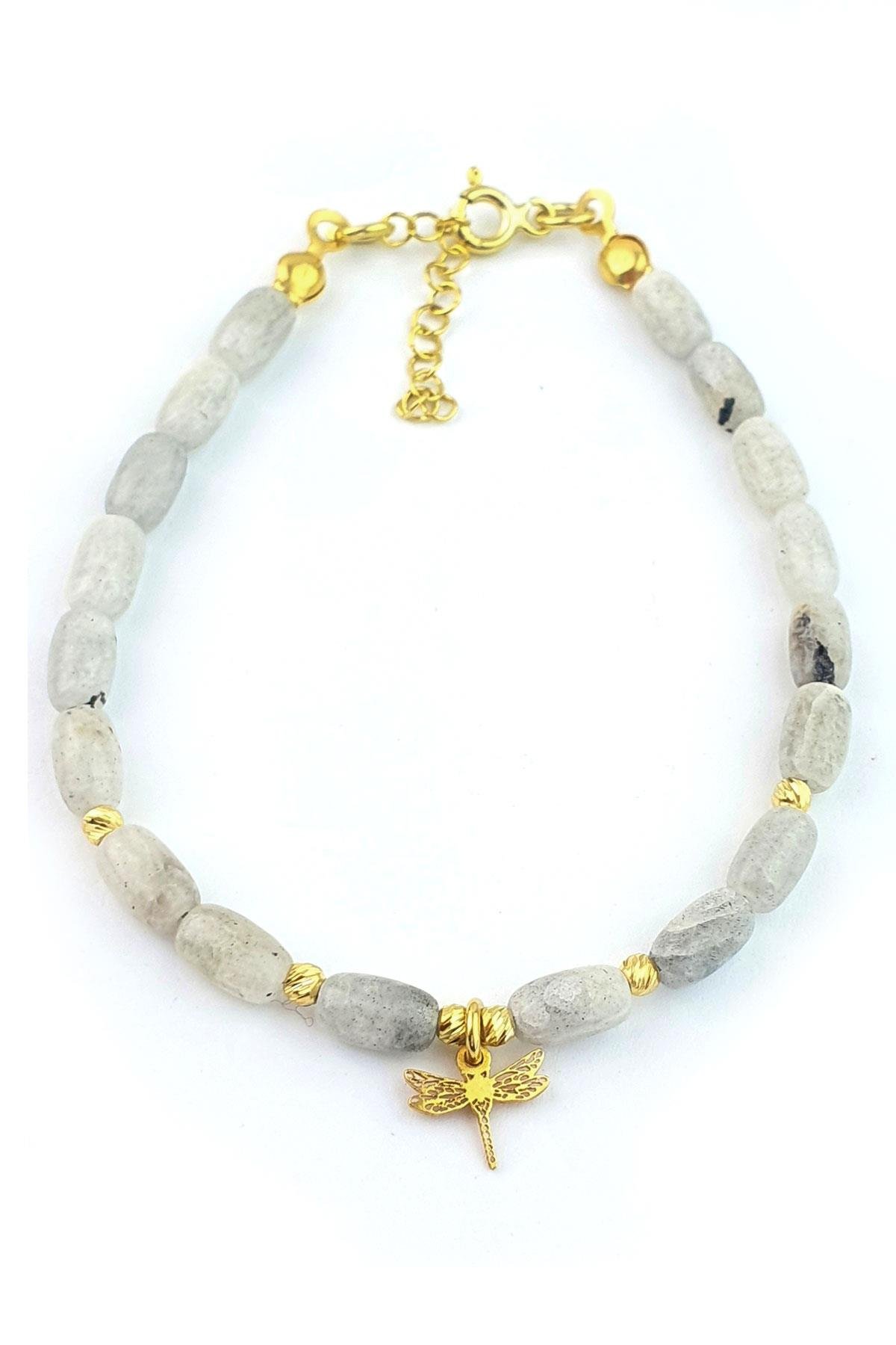 925 ayar Gümüş Üzerine Altın Kaplama Yusufçuk Figürlü Doğal ay taşı tasarım bileklik