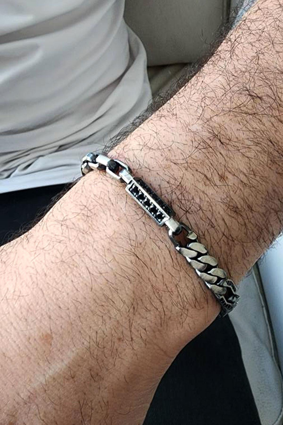Masculine Trace Oniks Taş Detaylı 925ayar Gümüş Tasarım Erkek Bileklik