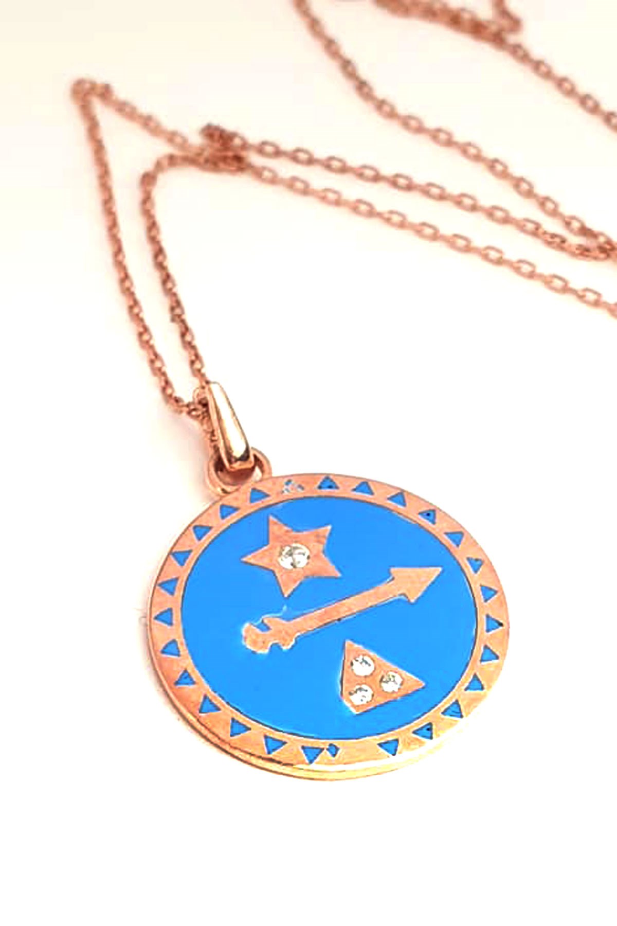 Mavi mineli 925 ayar gümüş rose plaka kolye