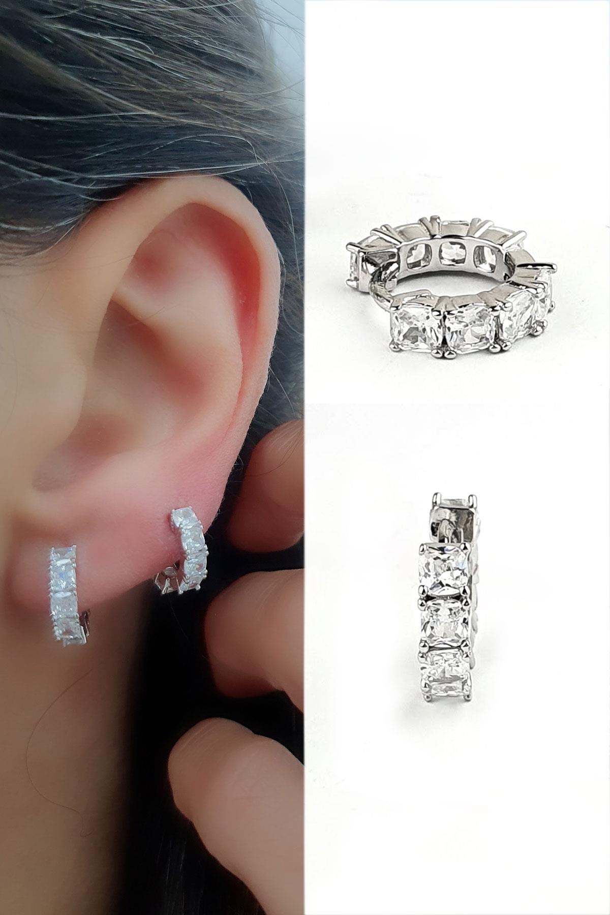 Pırlanta Parlaklığında Zirkon Taşlı 925 ayar Gümüş Minimal Tam tur küpe